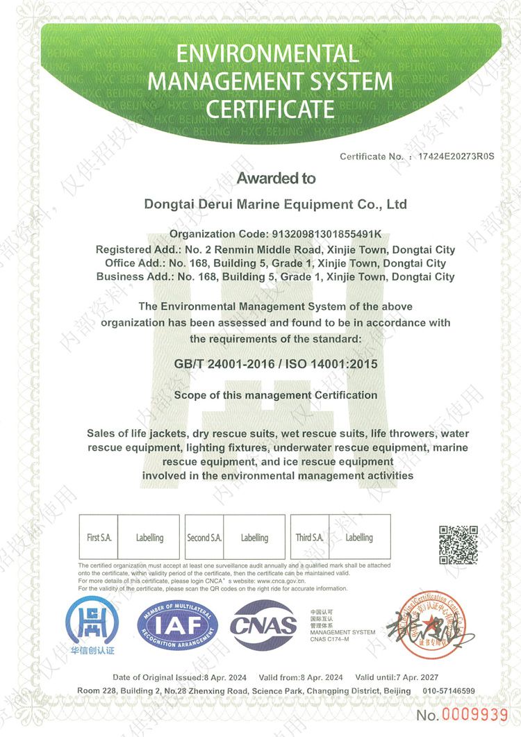 • 環境管理體系認證證書